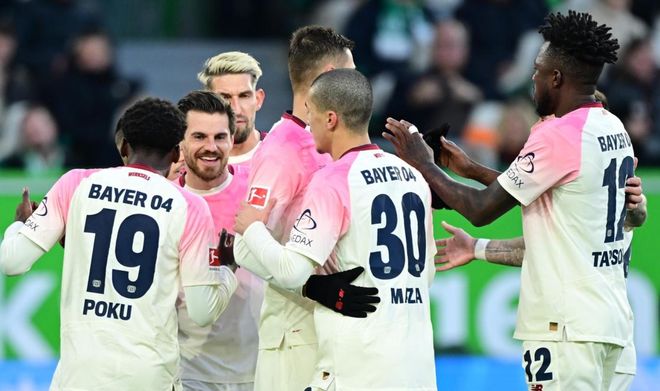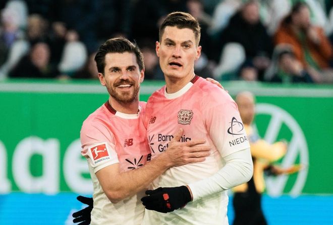 勒沃庫森排出3421陣型。??隧斣谧钋懊妗qR里克-蒂爾曼和霍夫曼聯袂出擊。格里馬爾多、阿萊士-加西亞、馬扎和波庫搭檔4中場。塔普索巴、巴代和安德里希3后衛首發出戰。弗萊肯擔任首發門將。勒沃庫森首發陣容總身價2.15億歐元。而沃爾夫斯堡首發陣容總身價1.14億歐元。