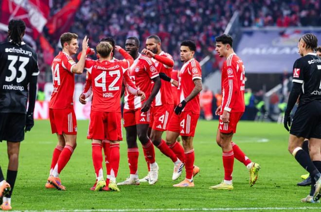 在兩球落后的情況下,奧利塞梅開二度,卡爾、于帕梅卡諾、凱恩、杰克遜各入一球,拜仁慕尼黑6比2逆轉戰勝弗賴堡,將德甲不敗紀錄延續到20場。