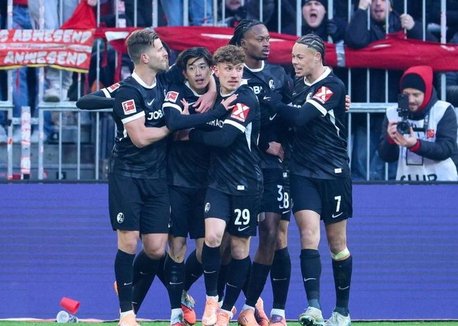 第38分鐘,鈴木唯人在禁區(qū)外帶球內切遠射,踢高了。半場補時階段,拜仁再次進球。奧利塞在禁區(qū)內抽射近角,球進了!門將這樣的射門都沒能撲出,太不應該。半場結束,拜仁2-2弗賴堡。拜仁上半場控球率75%,7次射門進了2球。而弗賴堡上半場5次射門,也是進了2球。