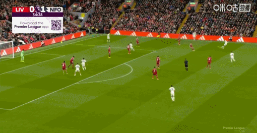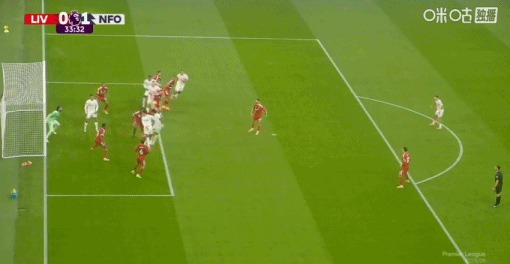 第33分鐘,森林開(kāi)出角球,穆里略抽射破門(mén)!利物浦0-1落后!